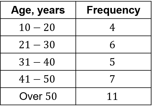 Example: This table shows the ages, in years, of customers at a hairdresser’s salon during a day.