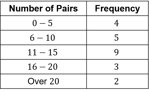 Anna asked her friends how many pairs of shoes they own. The results are shown in the table.