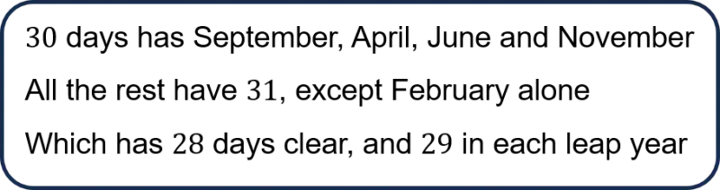 - There are 12 months in a year, but the number of days in each month is different. Your child might find the rhyme below helpful: