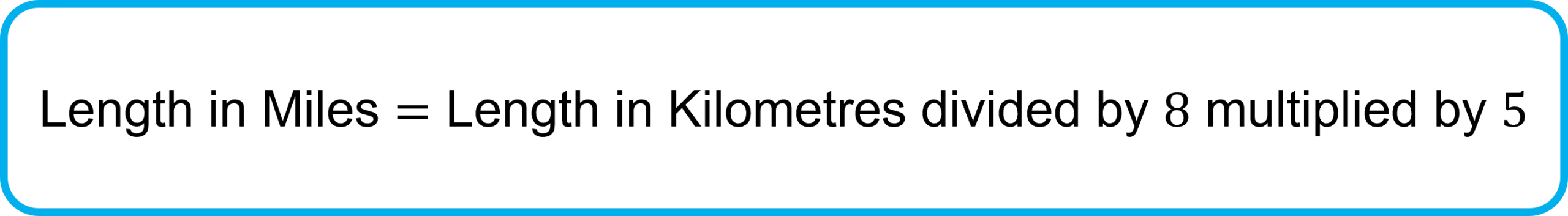 The conversions we have looked at so far have involved multiplying or dividing by 1000, but the method to convert between miles and kilometres has a different rule.